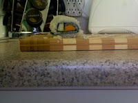 So my first attempt at sushi came out ok. It looks like a sushi roll at least and it tasted good, not exactly like I wanted, but edible. This is also the first food I am posting that was made in the new kitchen. So here it is: